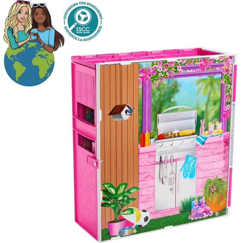 Kids can imagine so many sweet stories with the Barbie Getaway House! It comes with 4 play areas and 11 accessories for endless hours of fun.
