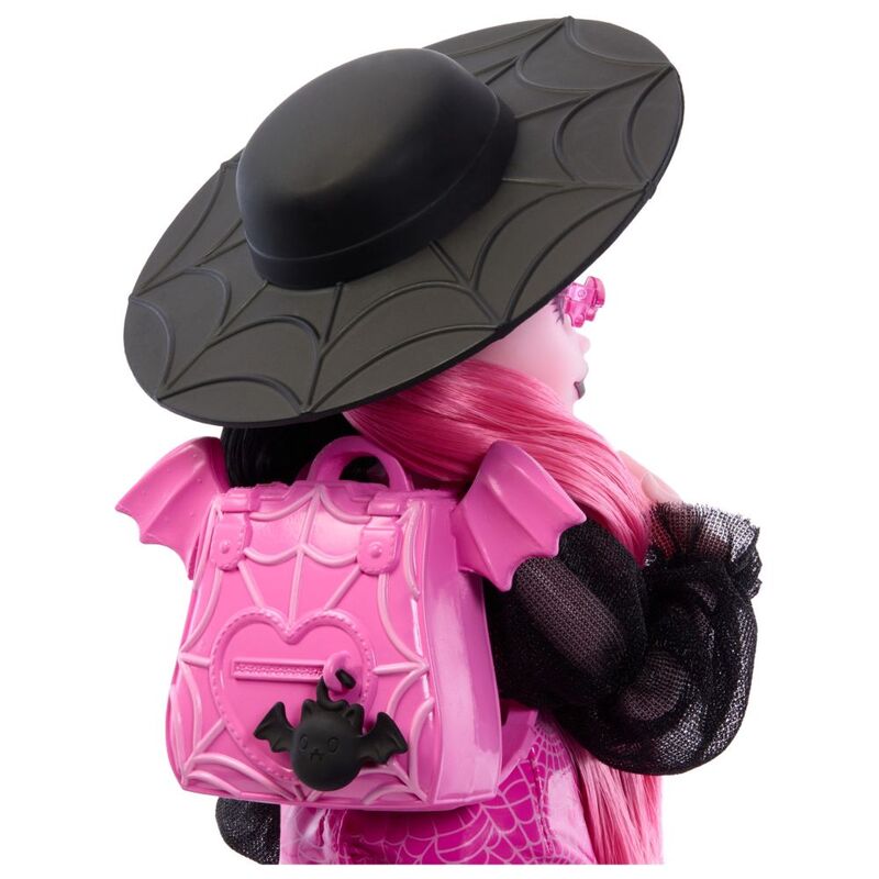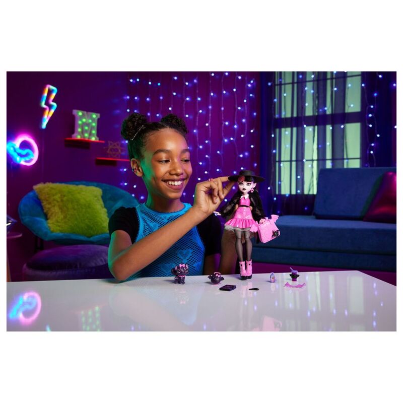 This Monster High doll makes quite a bewitching vampire! Draculaura shows off her fangtastic fashion sense in head-to-toe pink and black. Her purrfect pet Count Fabulous is at her side looking as scare-dorable as ever, too! With her poseable body and spooktacular storytelling accessories, Draculaura doll is a faboolous gift for kids 4 years old and up. Fully articulated. Doll cannot stand alone. Colors and decorations may vary.