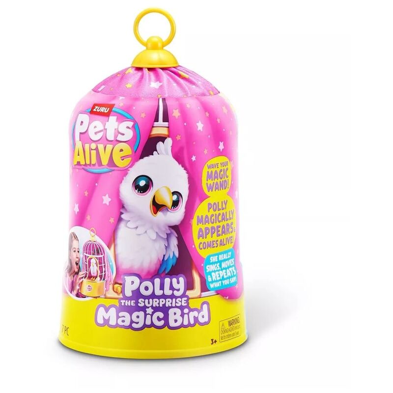 Get ready for a magical experience with Polly the Magic Bird! With just a simple magic trick, she springs to life, singing, moving, and even repeating what you say. Polly also comes with an adorable hatchable baby bird, adding even more charm to the fun. Full of enchanting surprises, Polly is bound to delight with her magical abilities. Abracadabra! Peek behind the curtain and discover the enchanting Polly the Magic Bird! Perform the magic trick, and watch as Polly comes to life in a truly interactive way. Watch in awe as she flaps her wings, chirps in response, and adds a touch of magic to every moment. Polly is sure to steal the spotlight and captivate everyone around, making for an extraordinary experience. A magical adventure awaits with Polly the Magic Bird!