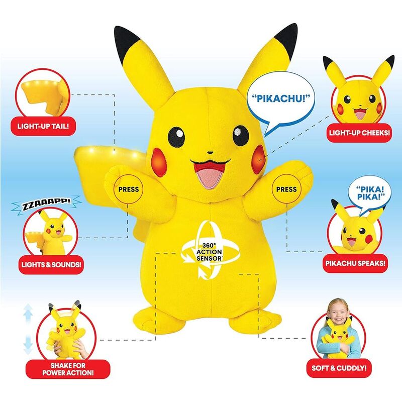 The Pokemon Power Action Pikachu 10inch is the perfect addition to any Pokemon lovers collection. This high-quality plush toy is designed with attention to detail, capturing the essence of Pikachus adorable and mischievous expression. It features a deluxe design that makes it stand out from other plush toys, making it an ideal gift for both children and adults who are fans of the iconic Pokemon character. With its soft and cuddly texture, this Plush Pikachu is perfect for snuggling up with or displaying on a shelf as a cherished collectible.