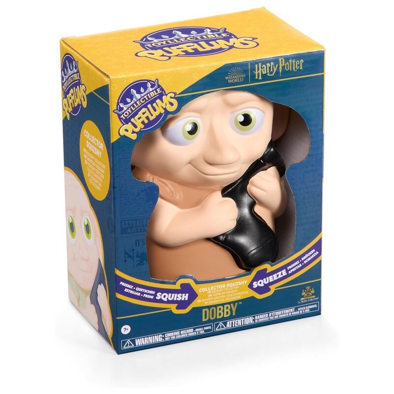 - Marshmallow Dobby is presented as a cute plushie, holding a black sock in his hand.