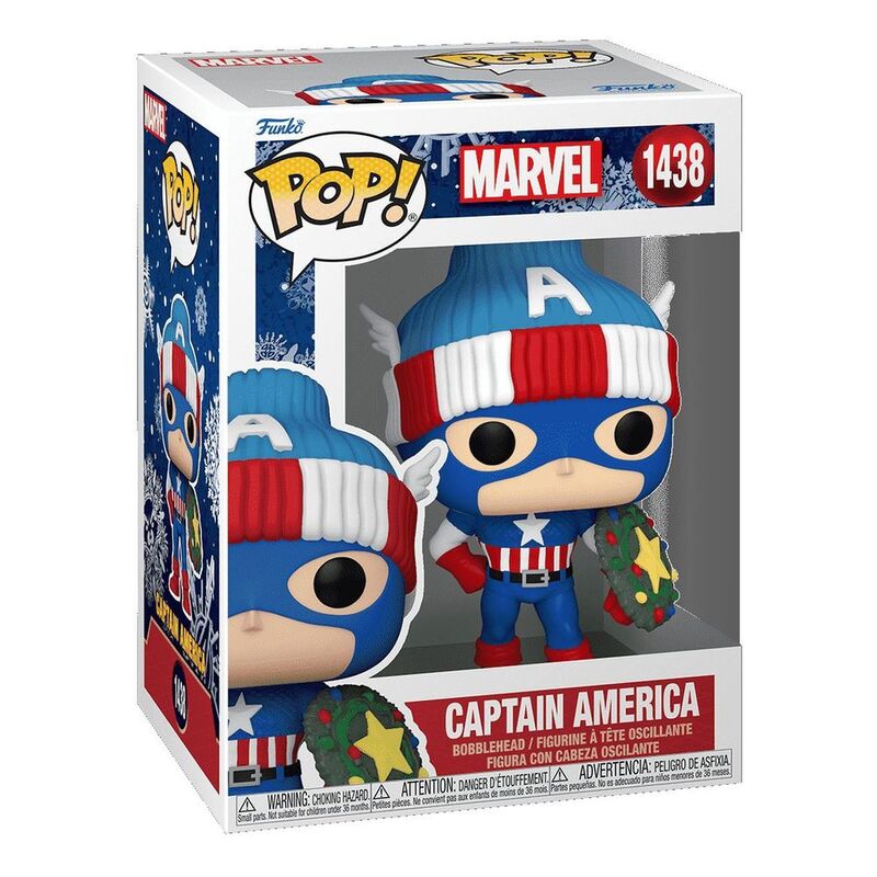 Bundle up for the holidays with Pop! Captain America! This super soldier has gotten into the spirit of the season by donning a cozy hat and decorating his shield with lights and evergreen boughs. Complete your Marvel collection with Pop! Captain America (holiday)! Vinyl bobblehead is approximately 4.35-inches tall.
