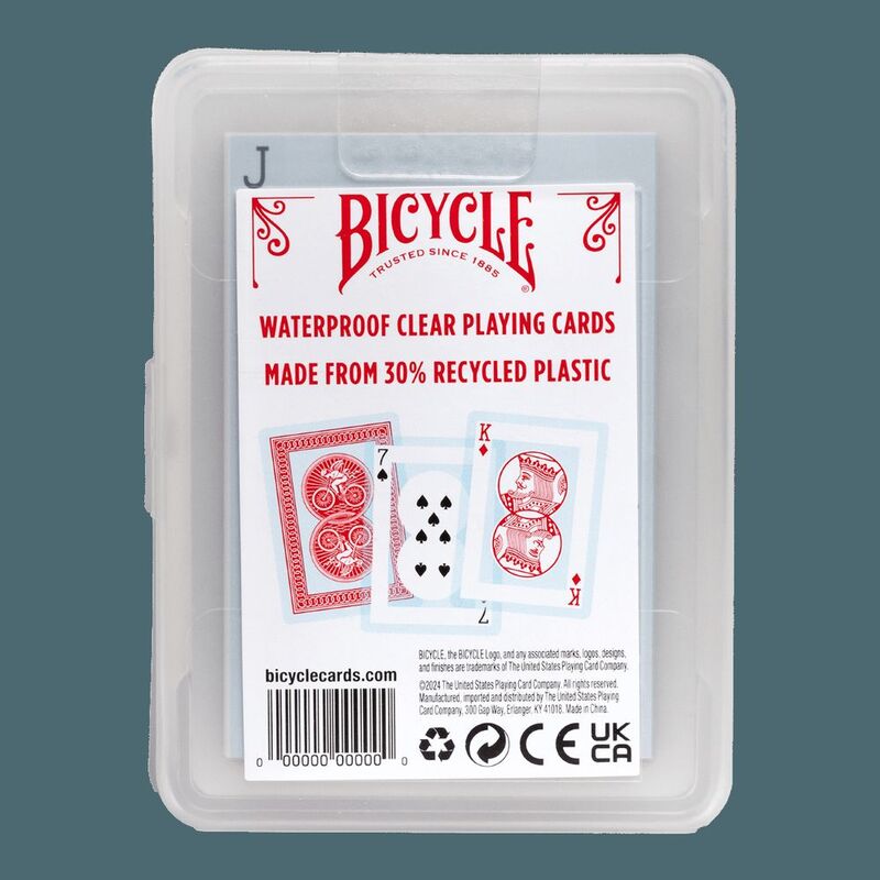 Bicycle Waterproof blends retro class and modern technology. Made from 30% recycled plastics, this durable deck of cards has a hard outer clam-shell case that keeps cards secure and easily rinseable if dirty, sandy or sticky.