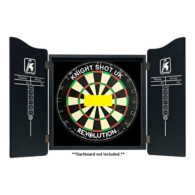 This Dart cabinets from Knight Shot is designed to hold your dartboard ready for play, and the doors provide a convenient space to keep score. While not in play, the doors may be closed to hide the board - adding beauty to any room. The cabinet is equipped with quality hinges making the doors adjustable. Dartboard not included.