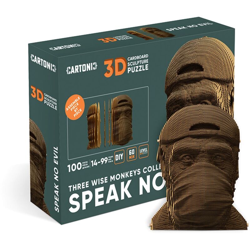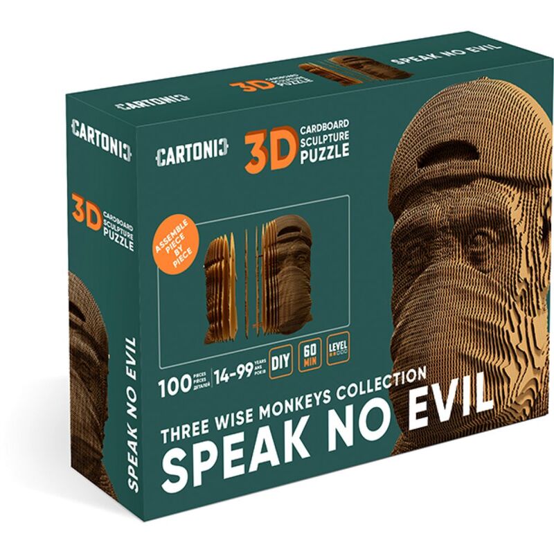 THREE WISE MONKEYS. SPEAK NO EVIL is a 3D cardboard puzzle by Cartonic from the symbolic Three Wise Monkeys collection in a modern interpretation. Each of the three monkeys is distinguished by a symbolic gesture: one covers its eyes, another its mouth, and the third its ears. This is the Speak No Evil model, which reminds us that words have extraordinary power and can hurt more than the sword. So watch what you say and try not to speak evil. Assemble this collection of puzzles with your friends or family. Let them decorate your space and remind you that you need to create goodness yourself in order to be surrounded by it.