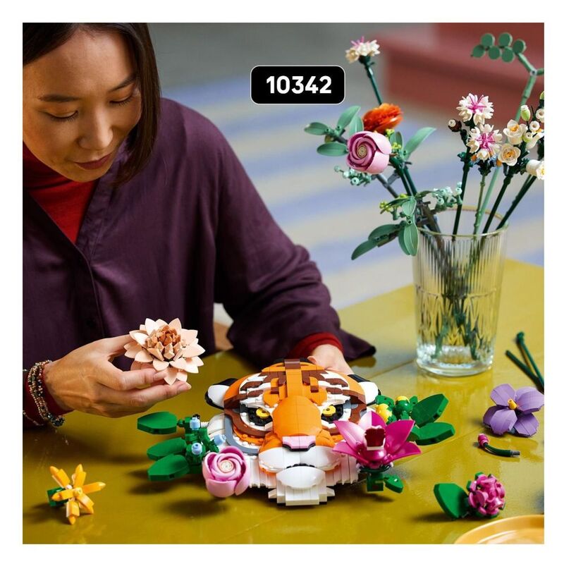 This wildlife decor depicts a beautiful tiger peeking through a collection of decorative flowers and plants. You can hang it on your wall or use its built-in stand to display on a table or shelf. The flowers are all customisable and can be moved into different positions, or you can add other brick-built flowers from some of the sets (sold separately) in the LEGO Botanicals collection.