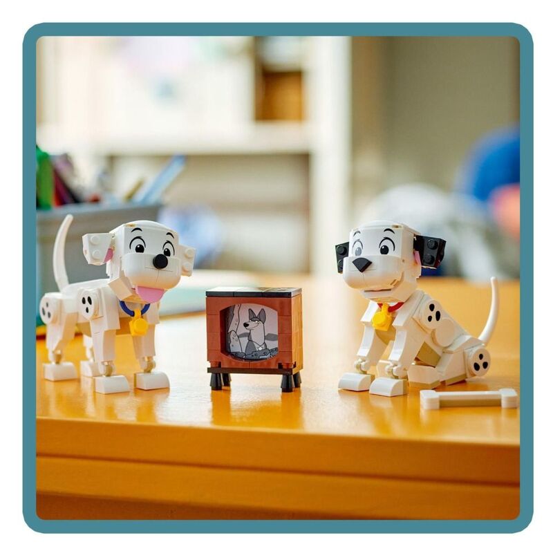 - • Dalmatian puppies everywhere – This kids’ building toy features Lucky and Penny LEGO® ǀ Disney characters from the classic film 101 Dalmatians, plus a brick-built bone and a small TV with screen