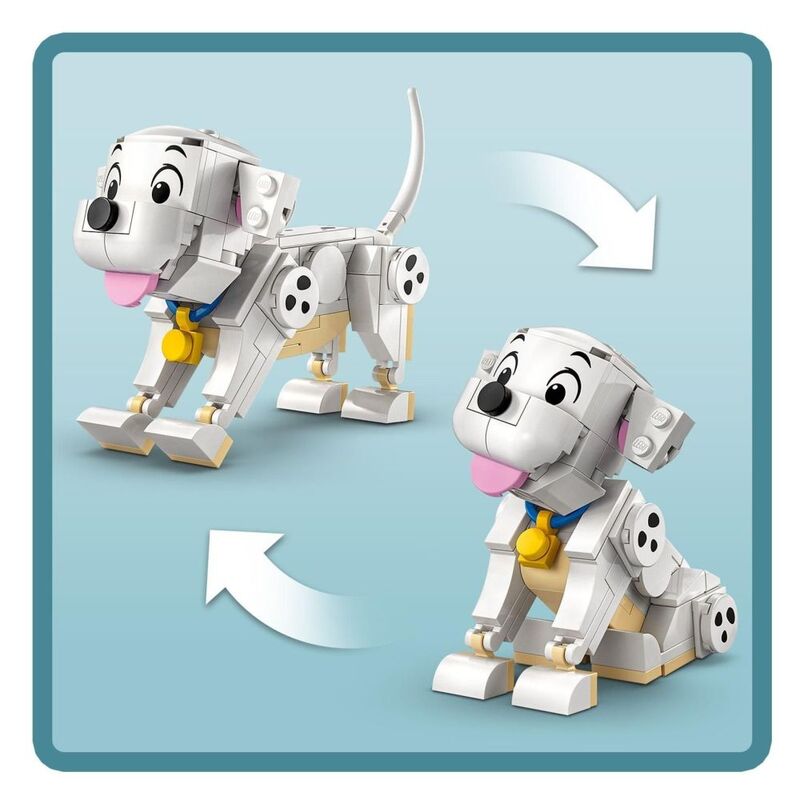 - • Toy puppies ready for play – The buildable LEGO® ǀ Disney puppy characters both have movable heads, legs and tails, and can be placed in classic poses such as standing up, sitting or lying down