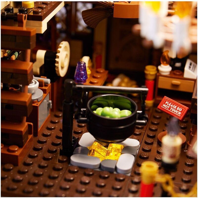 • Fun features – Spin the water wheel to make pink ‘smoke’ puff from the chimney, activate the LEGO® light brick to light the fire under the cauldron, open the witches’ Book of Spells, and more