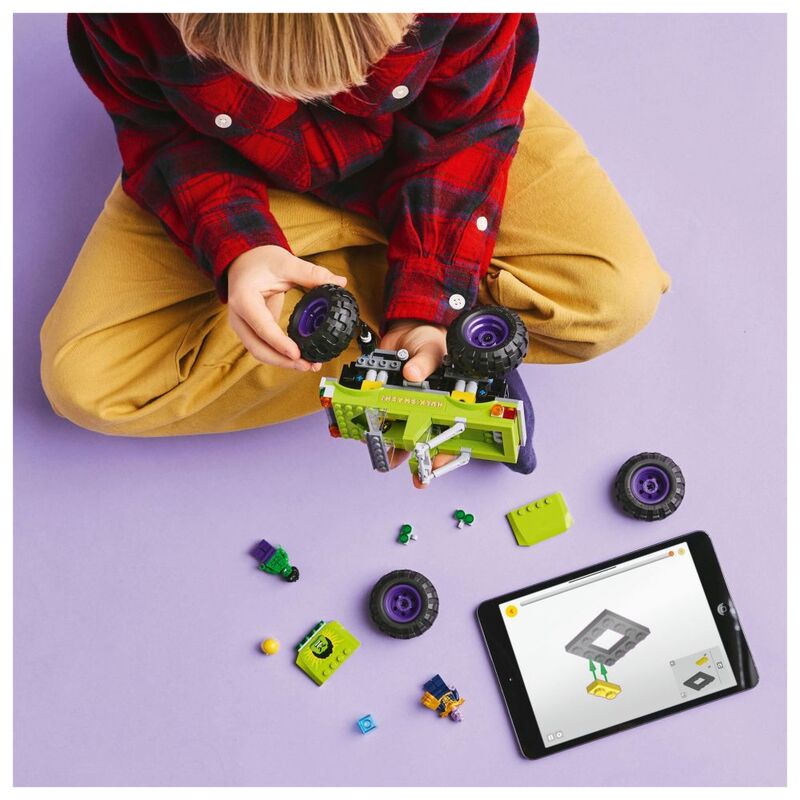 This buildable LEGO ǀ Marvel heavy-duty truck features a Hulk minifigure with a removable helmet and a Thanos minifigure with a Tesseract and Infinity Gauntlet. The Super Hero truck features a lift-off cab, providing access to the driver’s seat, with room for the Hulk minifigure. The outside is green with ‘Hulk Smash!’ and Hulk’s face decorations. With large turning wheels, a robust design and shock-absorbing suspension, the mega truck can handle the toughest of missions. For added digital fun, builders can zoom in, rotate models in 3D and track their progress using the fun, intuitive LEGO Builder app. Set contains 231 pieces.