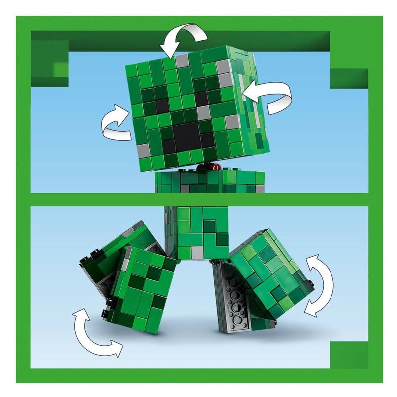 • • A hidden surprise – The front of the LEGO® Minecraft® Creeper™ figure’s head detaches treveal an interior space containing a first-version Creeper minifigure and a TNT element