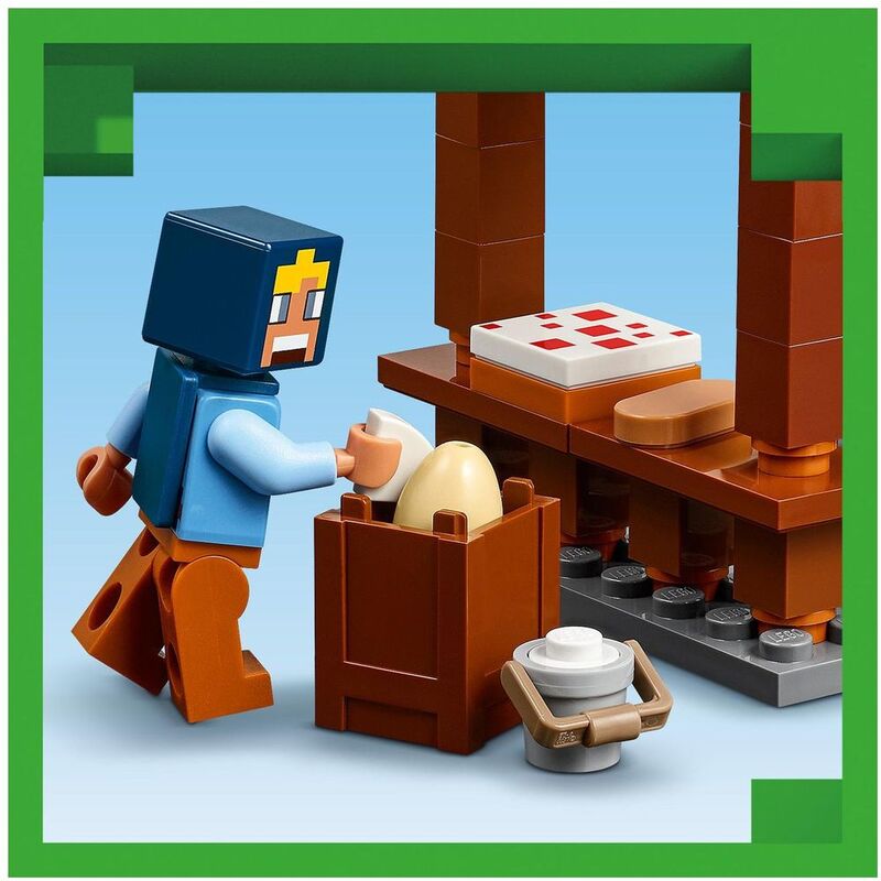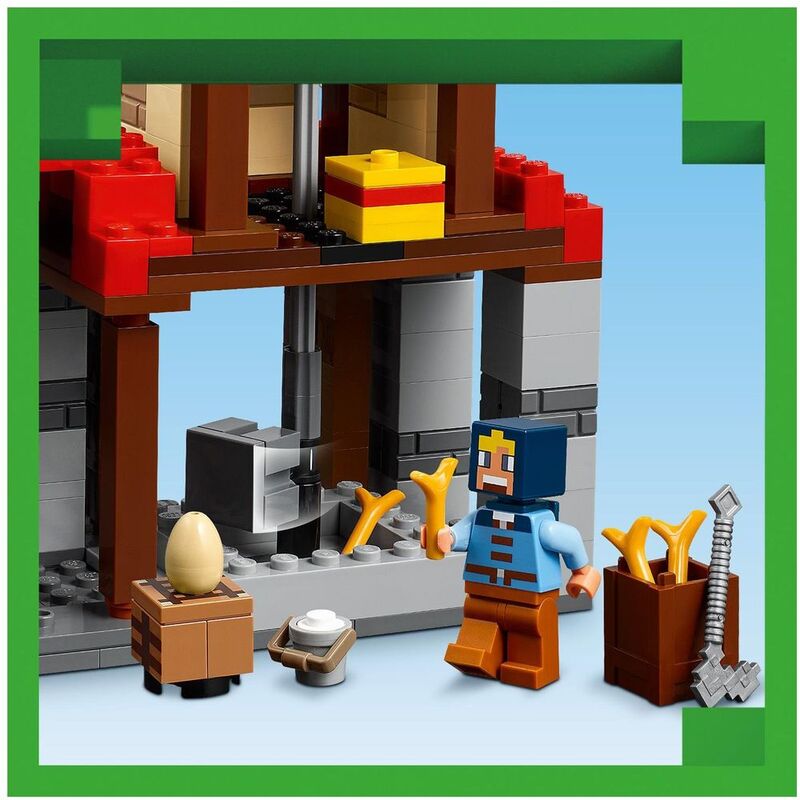 - Farm-equipment toys – Elements include a windmill millstone and a LEGO® Minecraft® loom as well as fun accessories, such as cake, bread, milk, shears and a barrel containing eggs and sugar