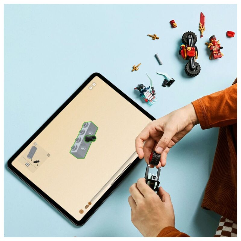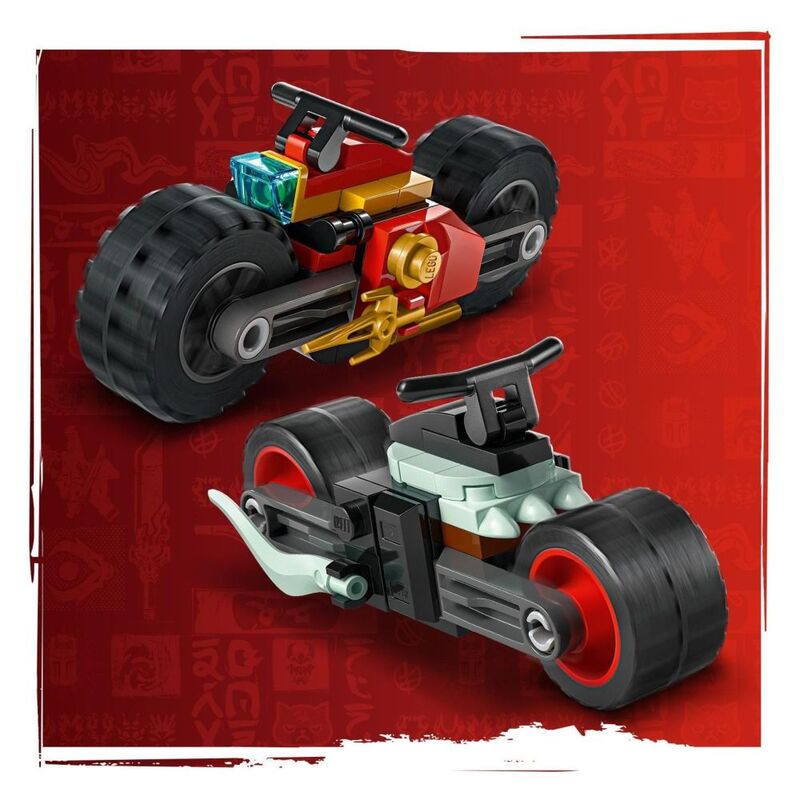 The ninja vehicle set includes 2 NINJAGO minifigures to ride the bikes: Kai armed with a translucent reveal blade accessory and 2 golden katana sword accessories, and a Spectral Dragonian Scout with a sword accessory, so kids can enjoy great imaginative play on their own or with their friends as they stage good vs. evil battles.