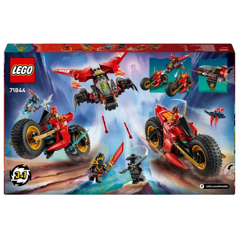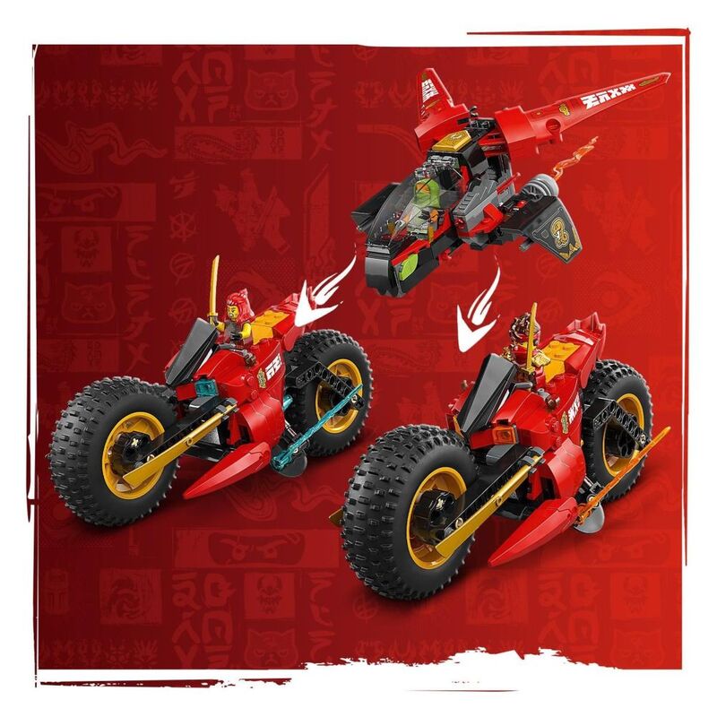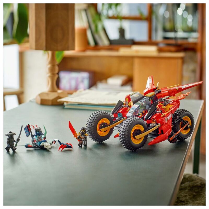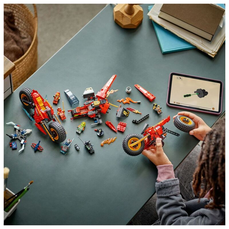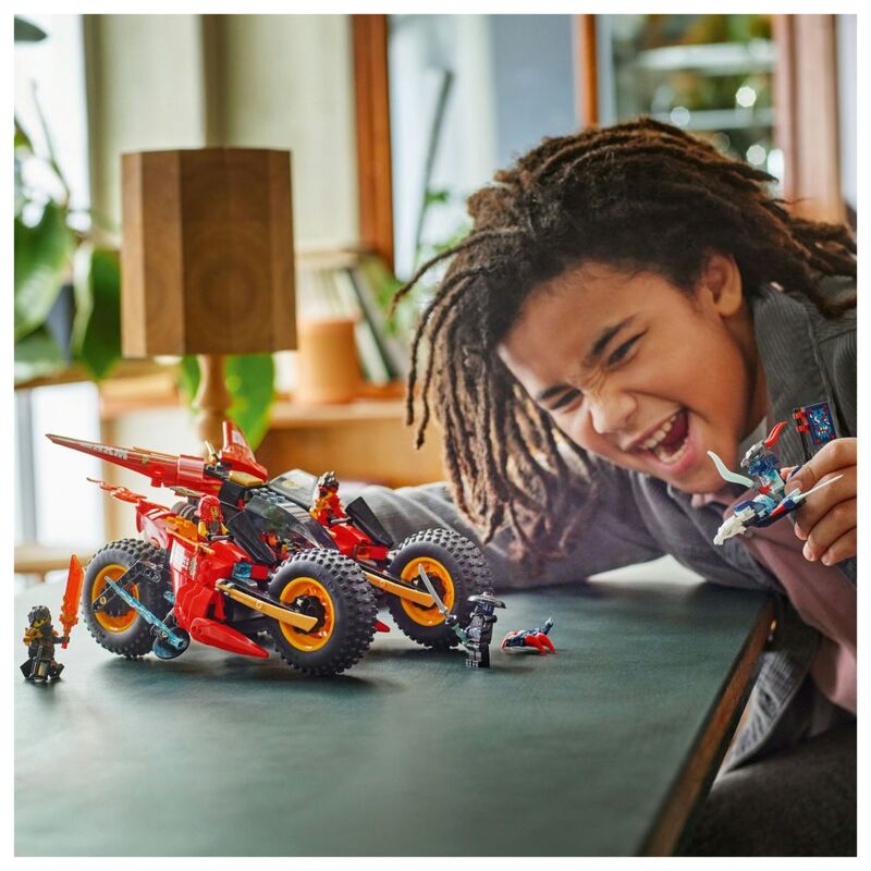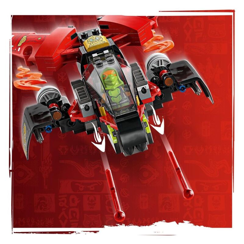 - • Detachable ninja vehicles – The large NINJAGO® vehicle can be separated int3 smaller vehicles: Kai’s ninja bike, Wyldfyre’s ninja bike and Frak’s aircraft jet toy with 2 stud shooters