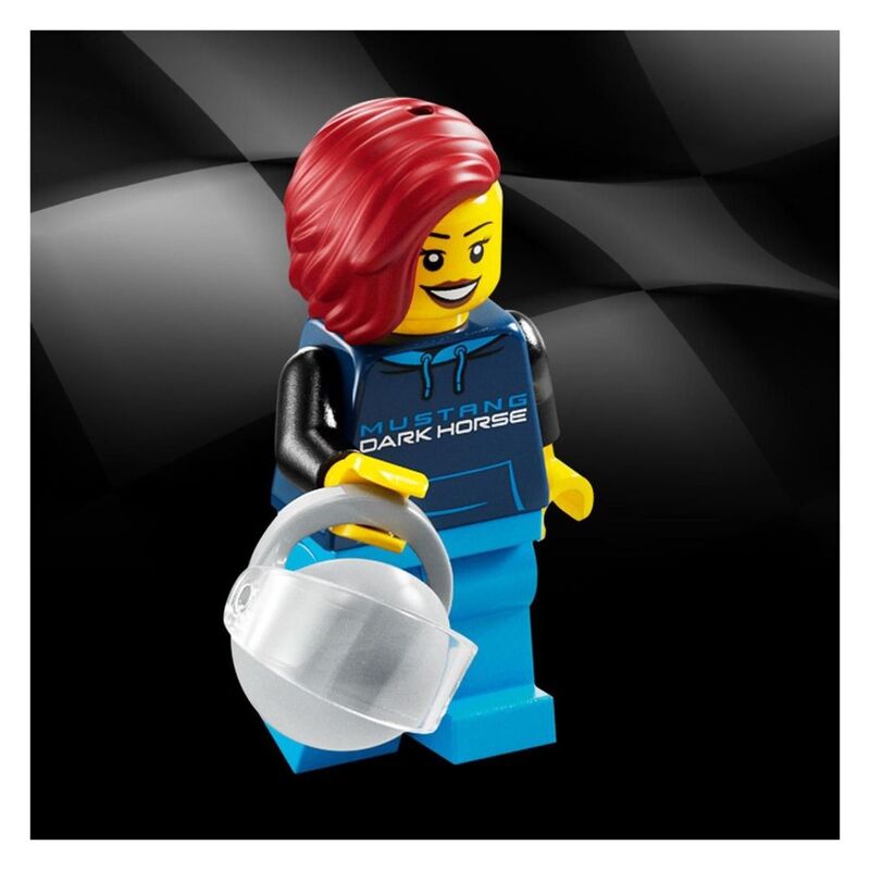 The Ford Mustang toy car features several authentic design features: the rear wing, distinctive grille, headlights, exhaust pipes, Ford logos and detailed interior with a gear stick and dashboard. The buildable LEGO car also comes with a removable roof and a driver minifigure wearing a Dark Horse hoodie for kids to place behind the wheel and play out exciting action.