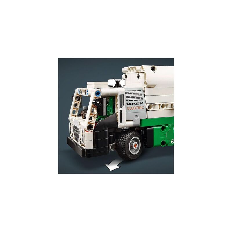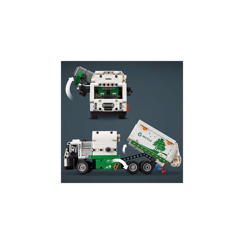 - Truck toy for kids aged 8+ – The LEGO® Technic Mack® LR Electric Garbage Truck for boys and girls features a side loader to grab, lift and tip the rubbish bins