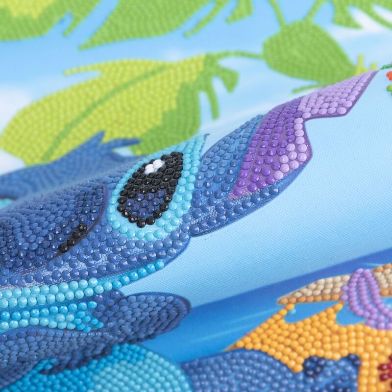 Enter the magical world of Disney with our Crystal Art Scroll Kit, featuring the lovable and naughty Stitch from the heart-warming movie Lilo & Stitch. This delightful scene shows Stitch chilling on a cosy hammock, with his evil twin Leroy and other mischievous clone keeping him company, adding a touch of humour and excitement to your crafting adventure.