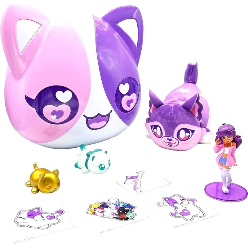 Contents include new Mee Meow plush, exclusive Mee Meow figures, squishies, stickers and the first of its kind, collectible Aphmau Animated figure! This set is contained within a 12” catface case that can double as a large collectible or carrying case for your Aphmau collection! Check out the official Aphmau YouTube channel and discover Aphmau and her world of Mee Meows!