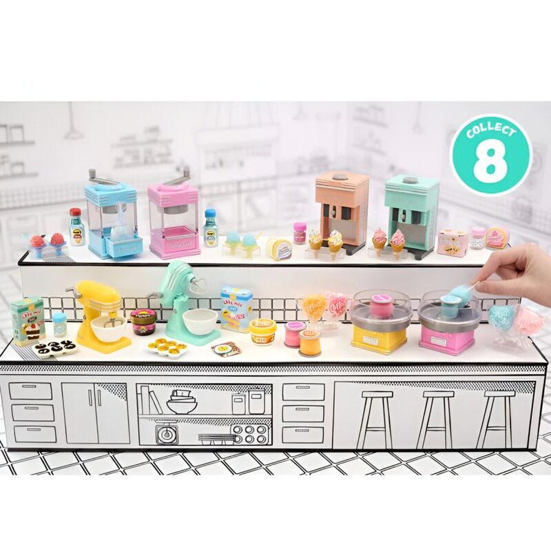 - UNBOX IT: Each ball comes with one real working mini appliance, plus all the accessories and ingredients to make your mini replica food treat. Appliances include: Cotton Candy Machine, Snow Cone Machine, Stand Mixer and a Soft Serve Machine, each in 2 different colors, for a total of 8 machines to collect.