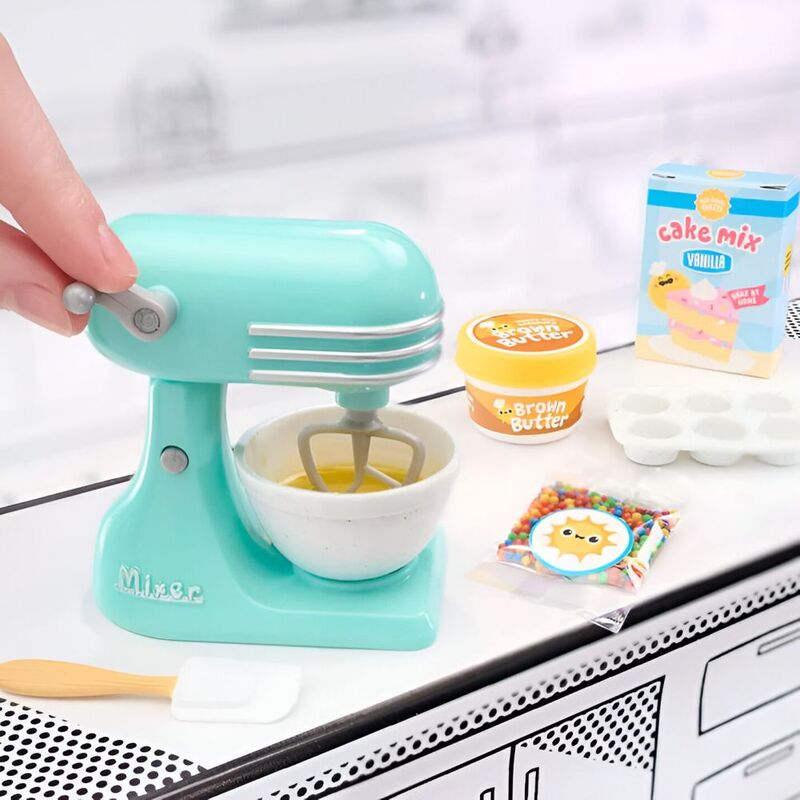 Each machine has unique real working features that will take your Make It Mini experience to the next level. You'll be able to crush "ice" with your snow cone machine, mix "batter" with your Stand Mixer, dispense soft serve, and twirl your cotton candy.