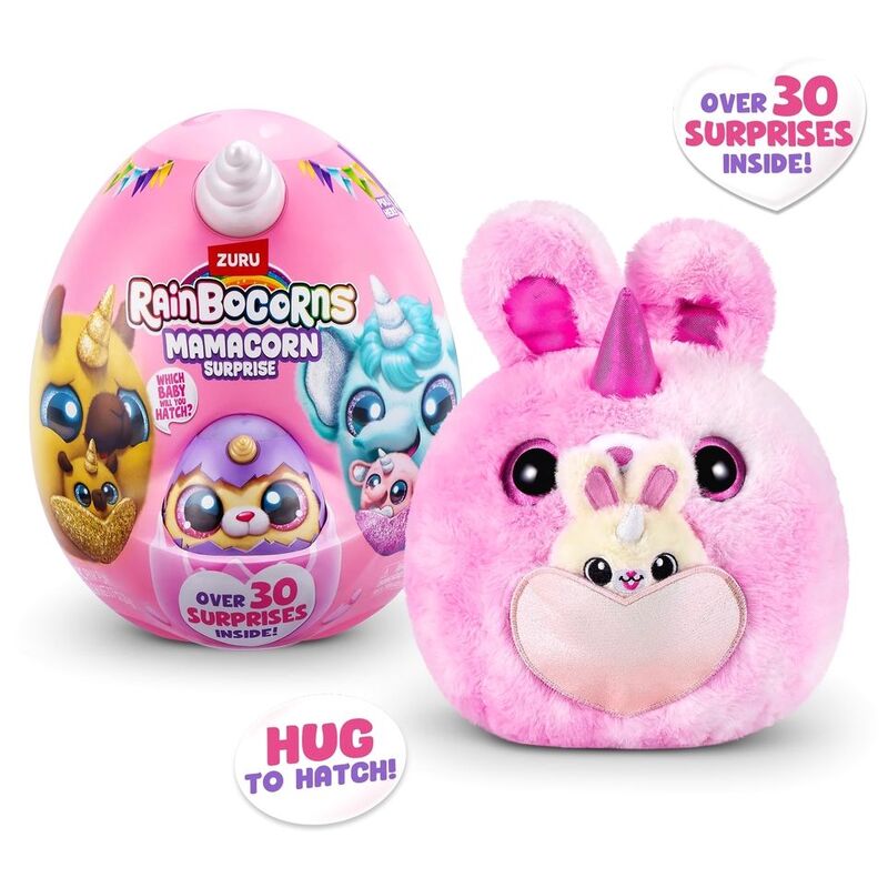 Hatch, hug, and discover the enchanting world of Rainbocorns Mamacorn Surprise. Crack open the giant egg to reveal a soft, collectible Mamacorn plush and uncover a mystery baby along with over 30 delightful mini-surprises. Perfect for imaginative play and collectible fun.