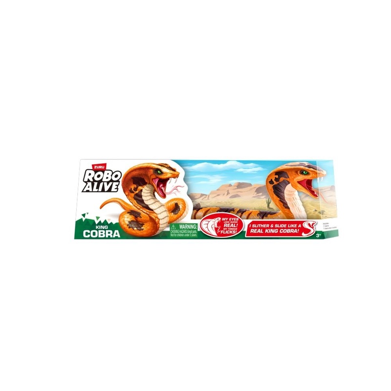 Smart Movement Technology: Robo Alive smart movement technology gives this King Cobra tongue realistic flicking movements! Watch it slithering along the floor to its prey and cross your fingers it’s not you!