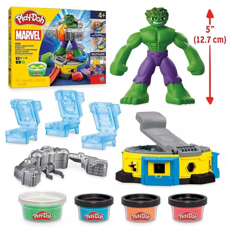 - Put the play power in kids’ hands with this Play-Doh Marvel toy set! Create Play-Doh trucks, tanks, and more and SMASH them with the Hulk figure in his power suit.