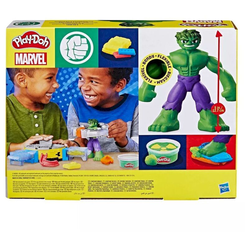 - Awesome, bendy 5-inch (12.7 cm) Hulk action figure can wear the Hulk Hands suit for super Play-Doh smashing power.