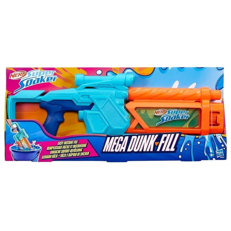 The Nerf Super Soaker Mega Dunk-Fill water blaster features an easy instant fill tank so you're ready for water-drenching fun in no time! The innovative tank design fills super fast - just dunk and go! There's nothing for you to do, just submerge the tanks in water and watch as they instantly refill. The translucent tank has a capacity of up to 1 litre (33.9 fluid ounces). Dunk the tank into water and you're ready for outdoor water games in an instant. Pump the handle back and forth to unleash a soaking blast. The blaster features a scope for targeting. Nerf Super Soaker blasters are great children's outdoor water toys and make amazing presents to get everyone outside for fun, active play that's a real splash!