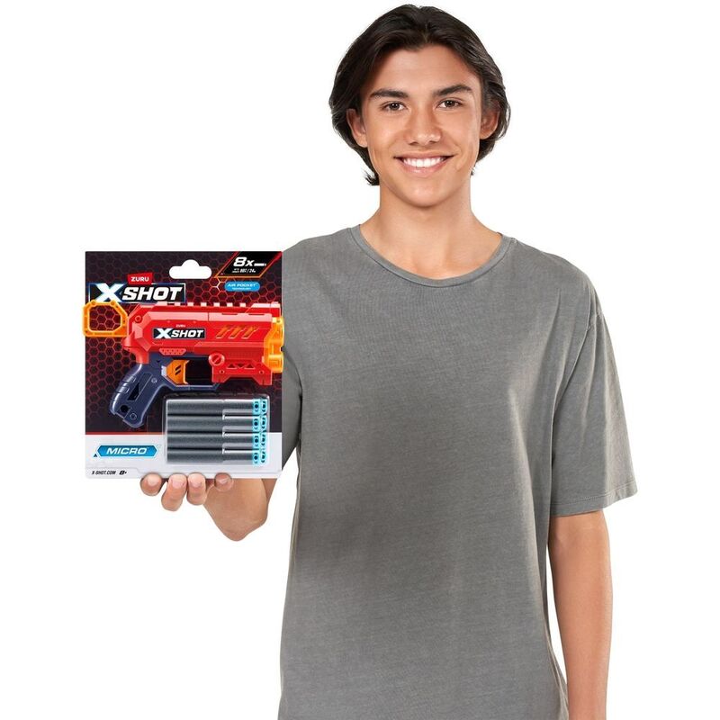 The X-Shot Micro 2.0 combines portability with functionality, featuring a single-shot, front-loaded design perfect for close-range skirmishes. Its under-barrel dart storage ensures quick reloads, while the compact red body makes it a great companion for on-the-go play. With 8 included darts, the Micro 2.0 is small but mighty, ready for action at any moment.