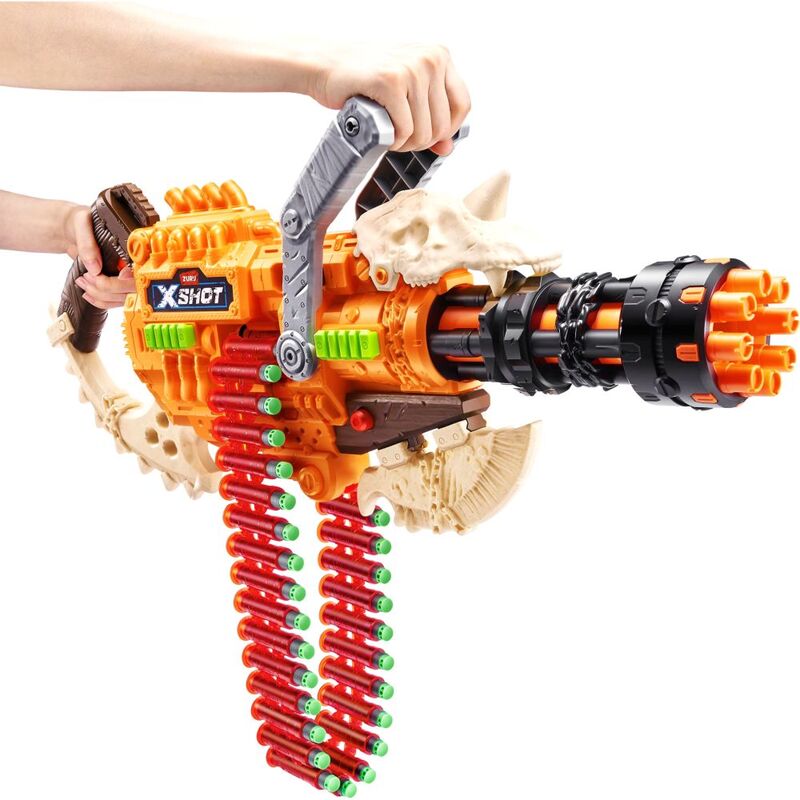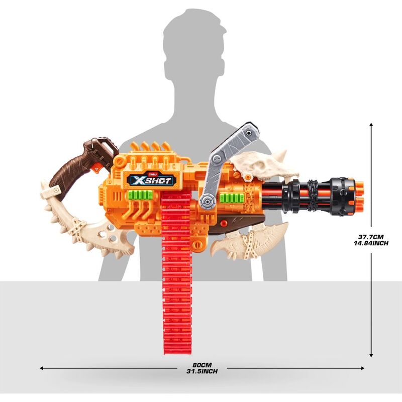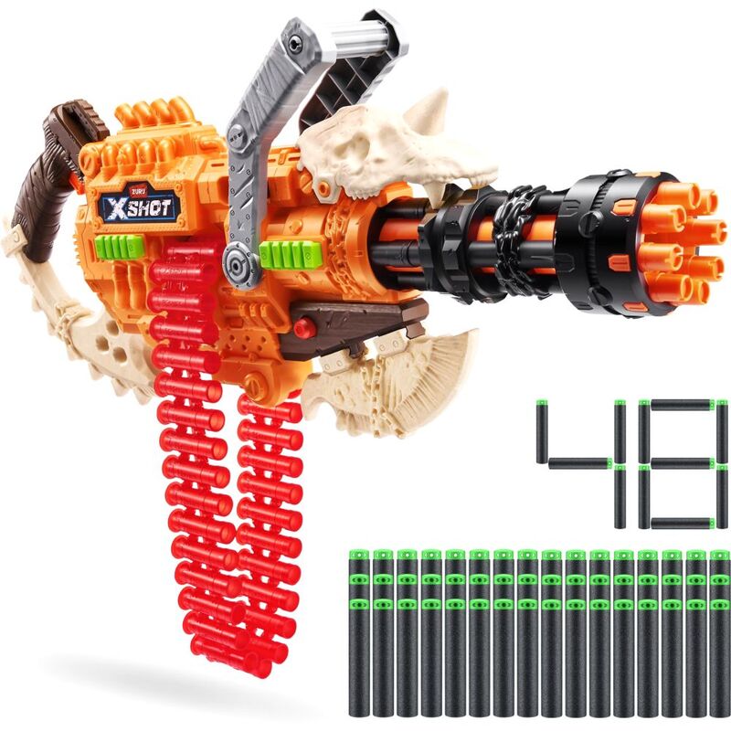 • Dart Capacity: The XSHOT Insanity HorrorFire Dread Hammer has a 35 Dart Clip pump to prime. Unleash all 48 included darts on your enemies in seconds!