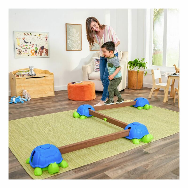 Break out of your shell and practice stability on the KidKraft Turtle Totter Balance Beam. Adorable turtles easily slide into a trio of wooden beams to create an instant obstacle course. Pretend you are crossing a river and your tortoise friends help guide you across. Watch out, one turtle has a tickly belly! You’ll know by the squeaky sound when you step on its back.