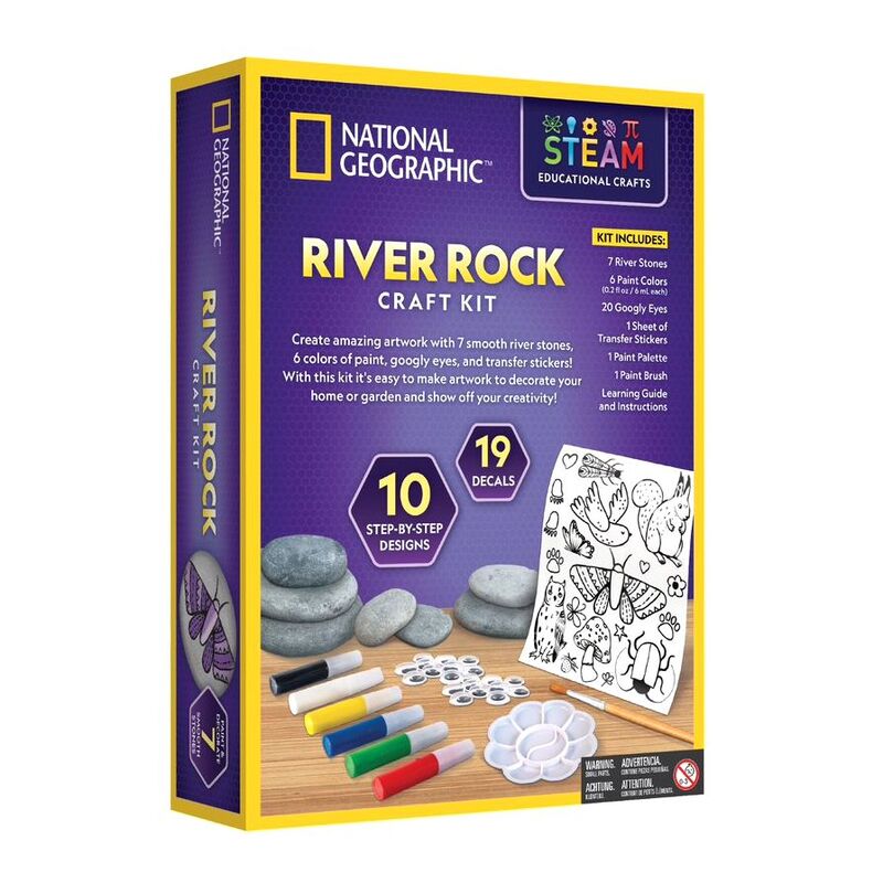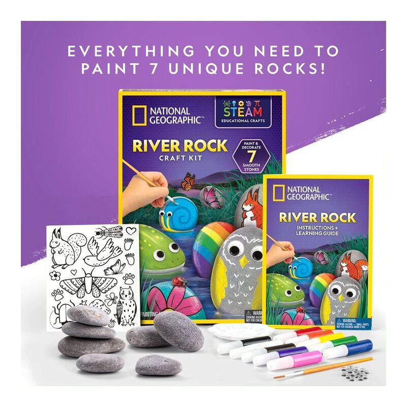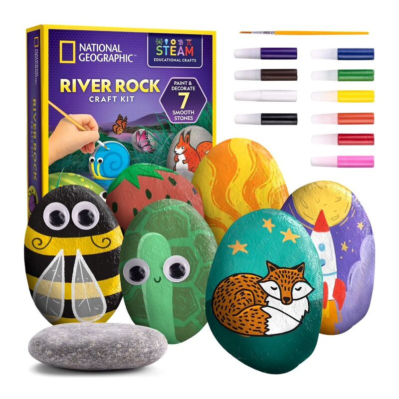 The National Geographic River Rock Craft Kit gives kids everything they need to paint and decorate seven smooth river stones!