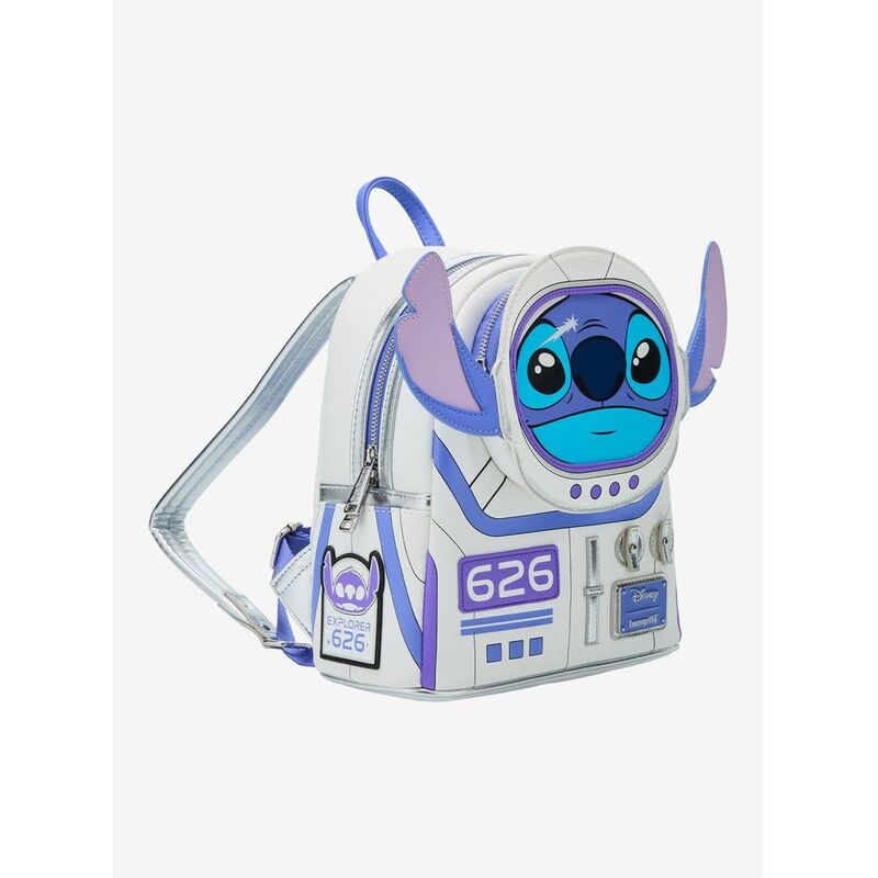 Stitch returns to space as this Lilo & Stitch mini backpack! Sporting his astronaut look, Stitch is fashioned into a figural front pouch with 3D ears, while transparent vinyl adds extra dimension to his spacesuit. Don't miss the matching wallet sold separately!