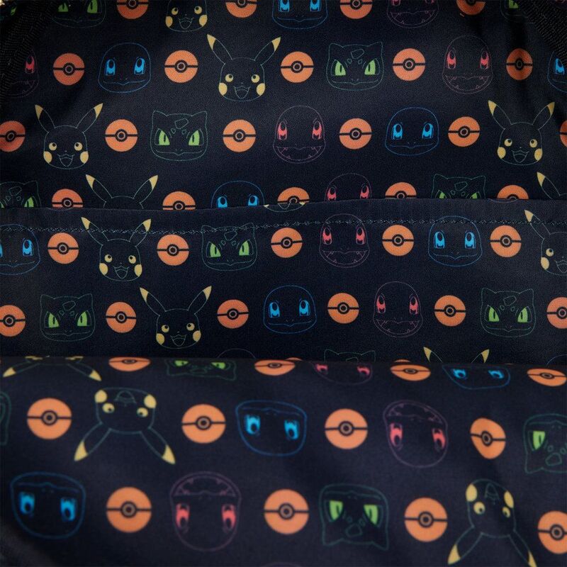 This bag features an all-over debossed pattern of some of your favourite Pokemon. On the quilted front pocket, you'll find a molded metal charm of a Poke Ball.