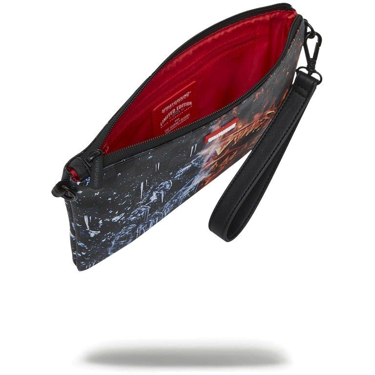Pouch with removable wristlet strap, Handle on front panel, Zip Closure