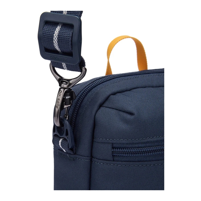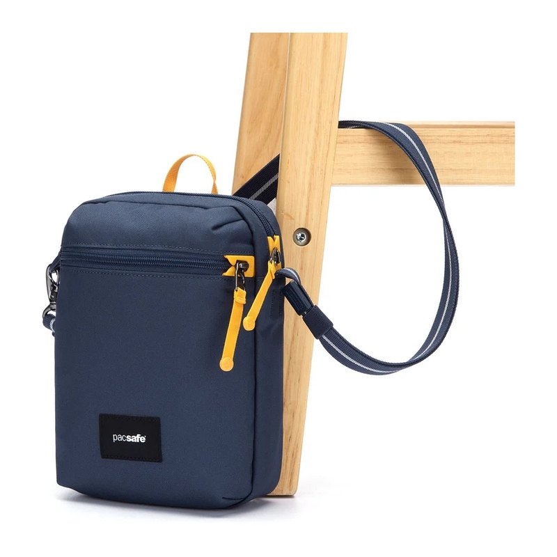 - The Pacsafe® Go Anti-Theft Festival Crossbody checks all the boxes for a must-have crossbody bag, whether it's for exploring a new city, dancing at a music festival, or café hopping in town. With two spacious compartments for easy organization, this bag can easily store a phone, wallet, portable charger, headphones, eBook reader, and more. Enjoy every moment without having to worry about your valuables as this crossbody features the hassle-free Dock Lock anti-theft feature, a cut-resistant strap, RFID-Blocking pocket and more. This product is made with post-consumer recycled polyester (rPET), equivalent to 6 recycled plastic bottles.