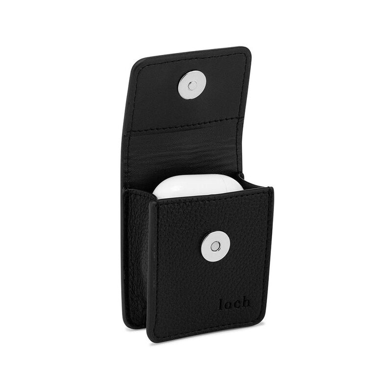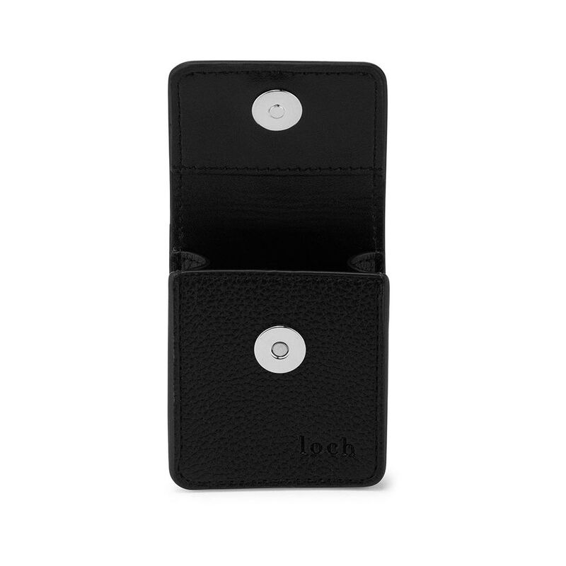 Loch Clippable Vegan-Leather Earphone Pouch Black / Silver Detailing