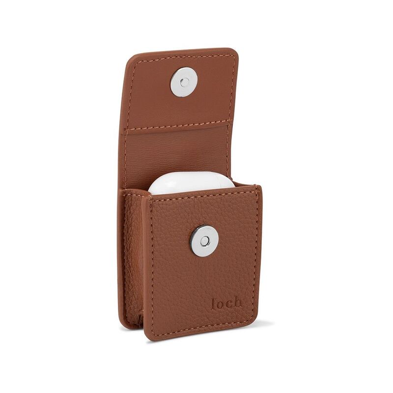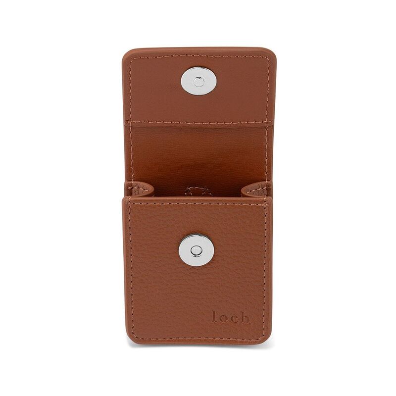 Loch Clippable Vegan-Leather Earphone Pouch Brown / Silver Detailing