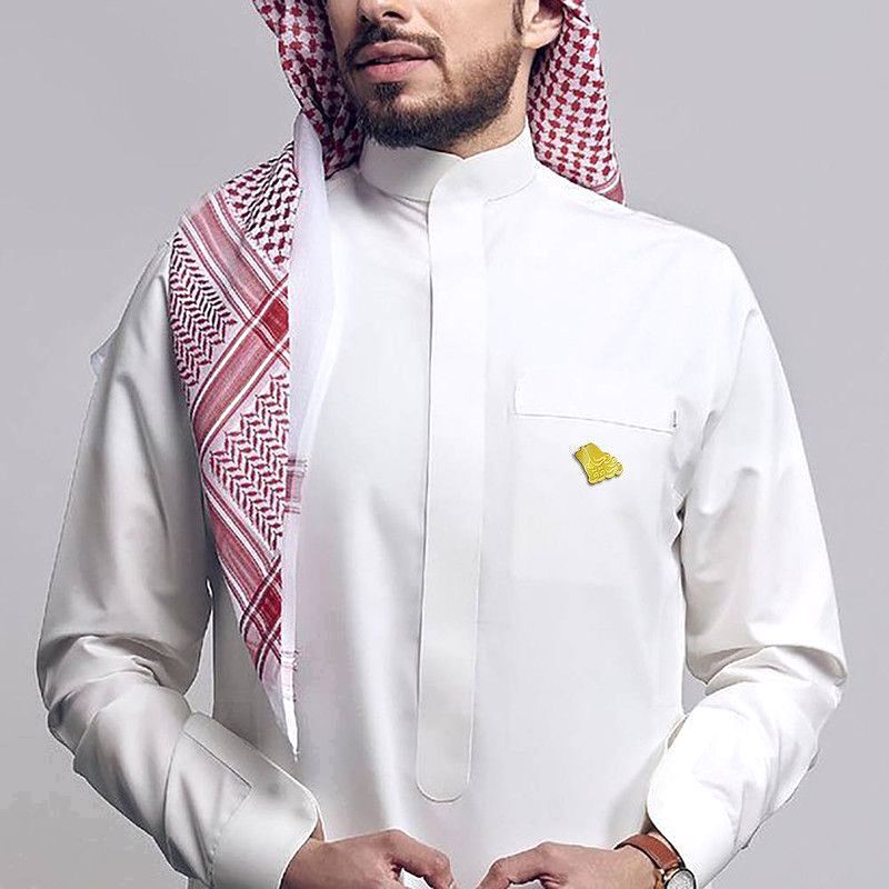 A solid metal pin magnet badge.~ Special for Saudi National day~ Width 3,5 cm~ Available in gold & green