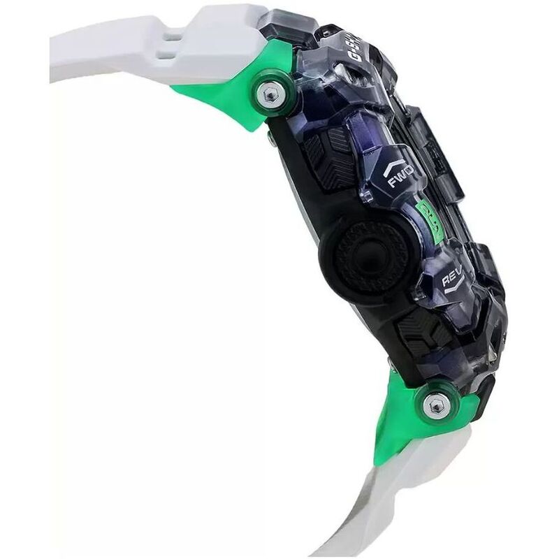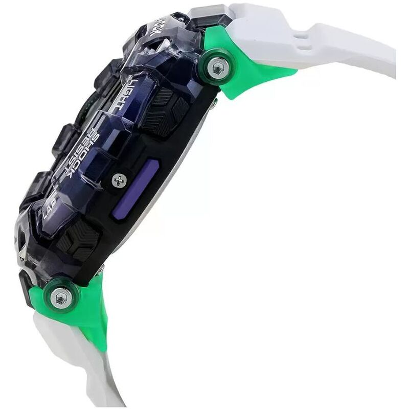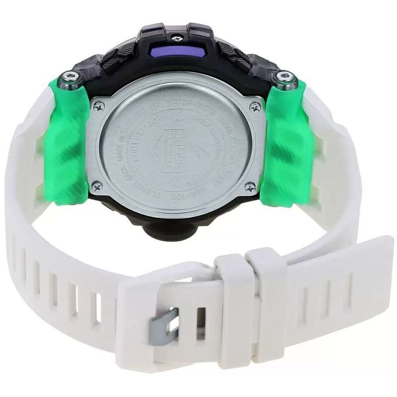 Introducing new colors for the G-SHOCK lineup of GBD-100 sports watches. Black and white base coloring is combined with vivid light collecting resin and semitransparent resin for a dazzling design that contributes to the enjoyment of a wide range of activities.Function-wise, these models employ Bluetooth technology to allow access to a smartphone's GPS for quicker calibration of distance measurements. Once calibration is done, the watch is able to perform more accurate running distance measurements, even when it is no longer connected to the phone.Distance measurements used in combination with run time measurements let you keep track of your pace, and also enable use of an Auto Lap feature that automatically keeps track of times over a specific distance. The soft urethane band material provides improved comfort, while a large number of band holes let you adjust the fit to your particular wrist.