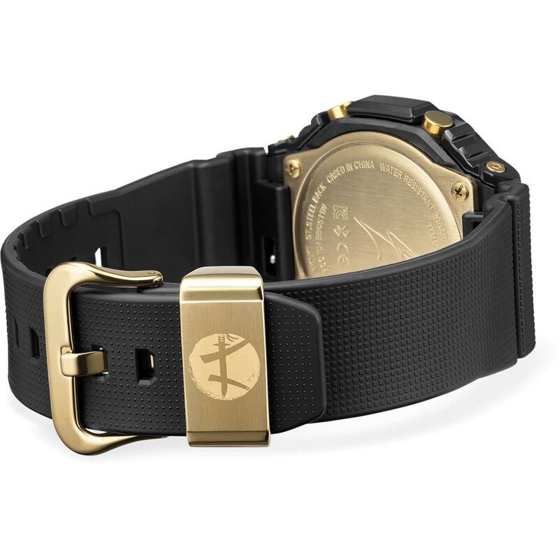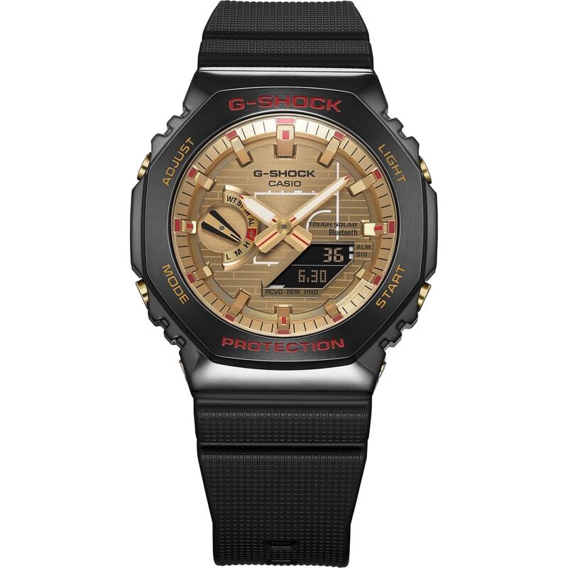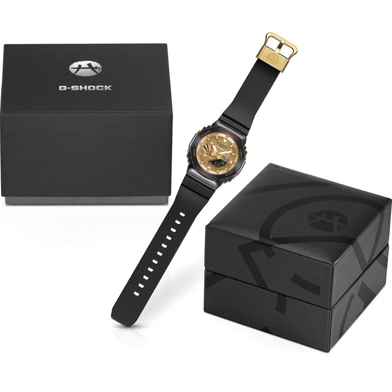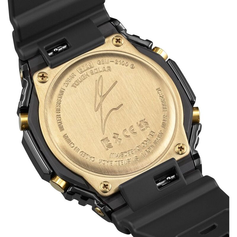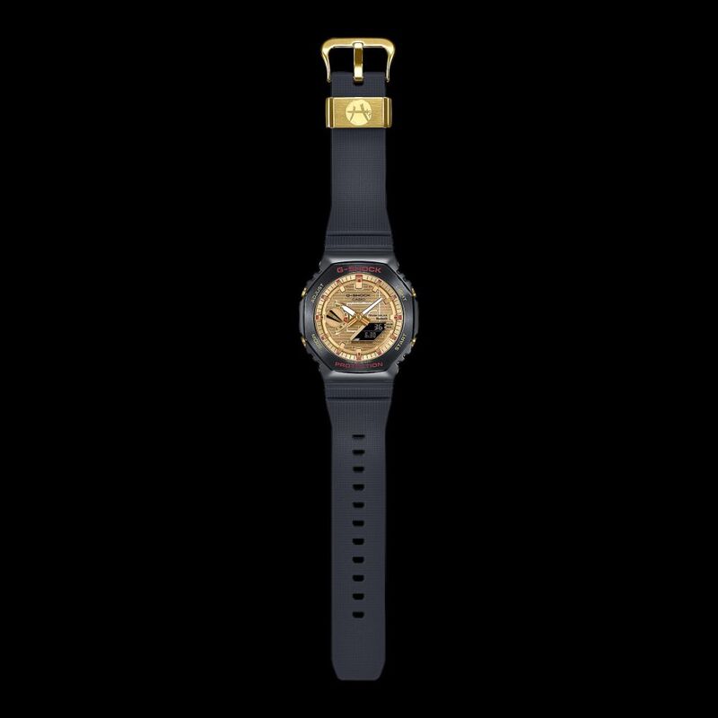 This collaboration model is based on the GBM-2100, with bold metal bezel, solar charging, and Bluetooth® connectivity. Touches of red a G-SHOCK brand color that also evokes Hachimura’s passion for the game are added to set off the gold color of the dial, which features a basketball-court motif. The black band highlights the watch face’s powerful impact and pulls the design together for a timepiece that projects focus and strength.