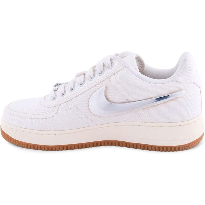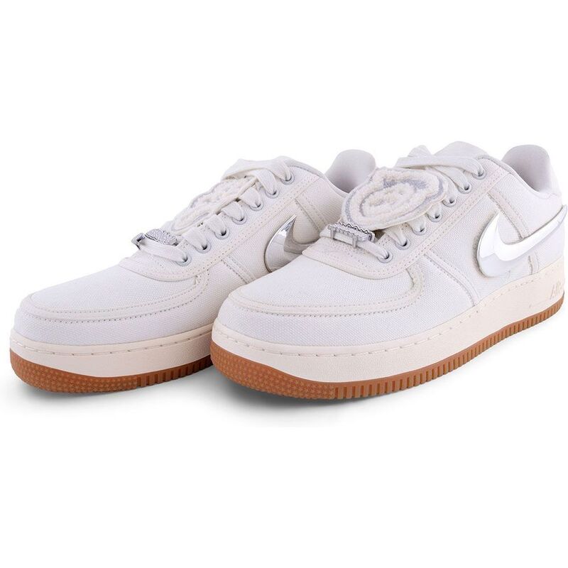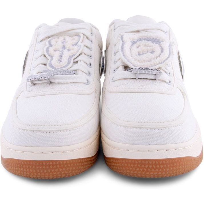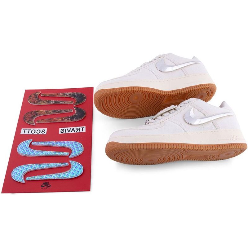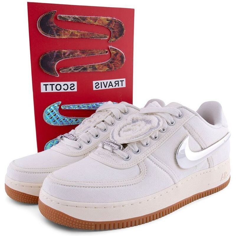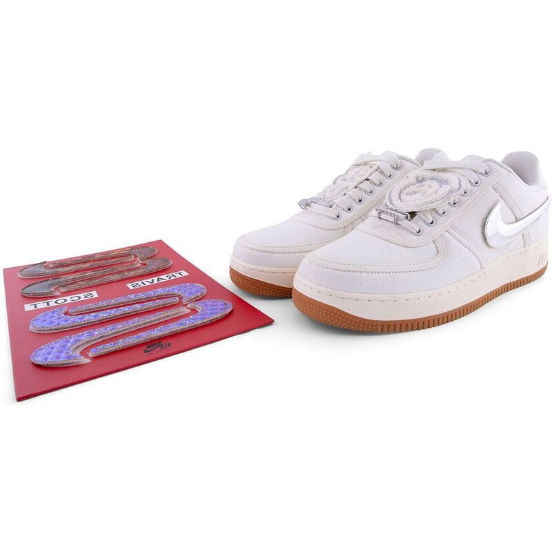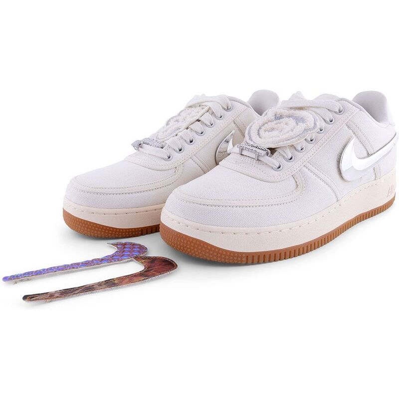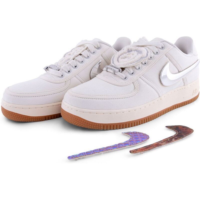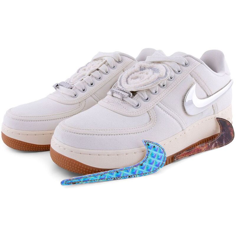 Marking the rapper’s second iconic collaboration with Nike, these sneakers swap the all-white finish for a slightly darker sail, retaining the tonal canvas construction that feature removable Swooshes and tongue patches, with the shiny lace jewells nodding to Scott’s signature grill.