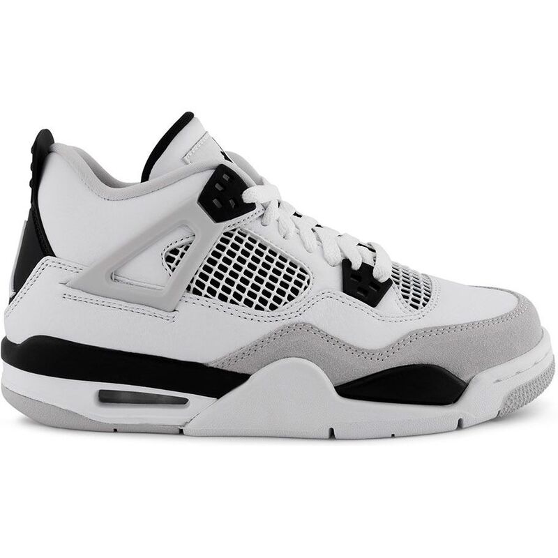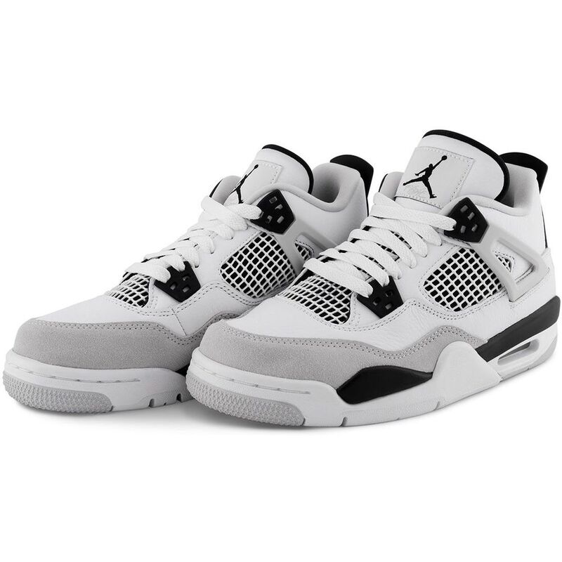 These sneakers mirror the OG 1989 ‘Military Blue’ colorway. They feature smooth white leather with a grey suede forefoot overlay and black accents on the TPU eyelets, molded heel tab, and iconic Jumpman logo, while the two-tone polyurethane midsole with a visible Air-sole unit in the heel provides lightweight cushioning.