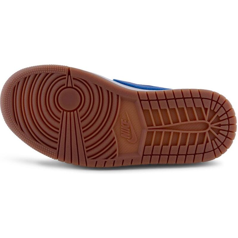 These sneakers feature the rapper’s signature reverse Swoosh in Racer Blue on the side, with white leather upper contrasted by yellow forefoot and heel overlays. A red and black Nike Air tag graces the tongue, with mismatched Cactus Jack and Jordan Wings branding embroidered on the heels.