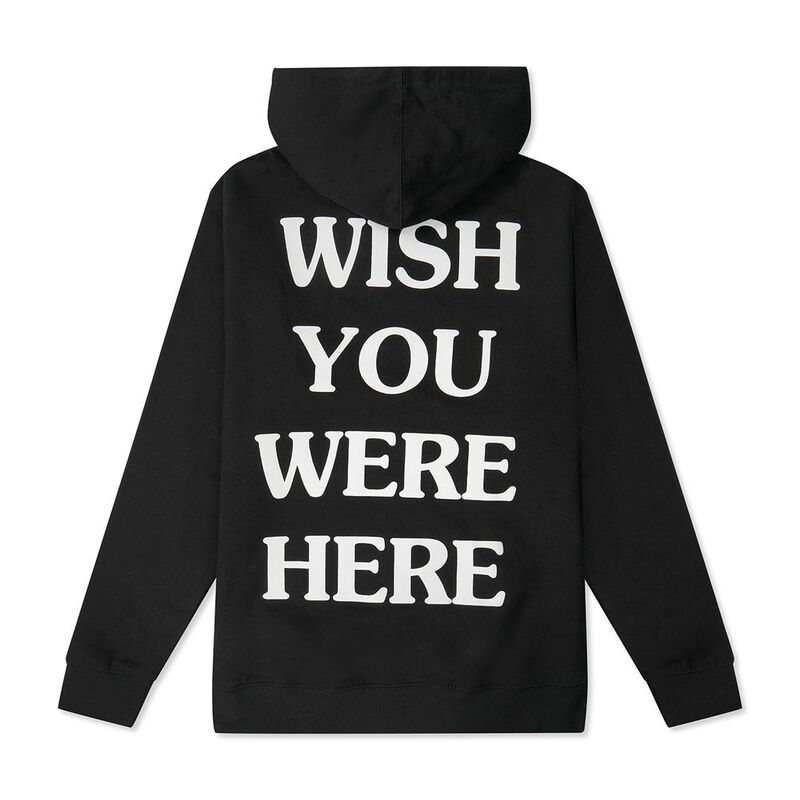 The Astroworld Logo Hoodie in black celebrates Travis Scott's album, Astroworld. It features the iconic Astroworld logo on the front in vibrant colours, and the phrase "Wish You Were Here" on the back, embodying Travis Scott's iconic style and cultural influence.