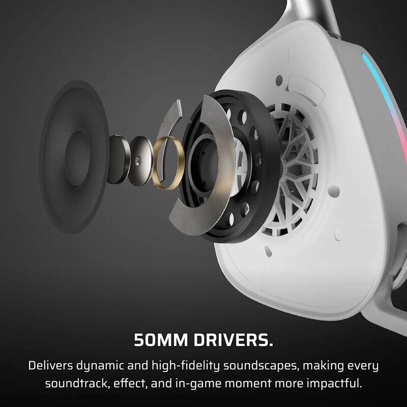 Hear everything around you in your favorite games with custom-tuned 50mm drivers and Dolby Atmos Spatial Audio. Stay connected with ultra-fast 2.4GHz wireless* or Bluetooth, and game longer with up to 70 hours of battery life. Quickly charging for just 15 minutes adds 6 more hours of battery life. Designed for PlayStation 5, PC, and more, VOID WIRELESS v2 offers multiplatform compatibility and breathable memory foam ear cushions for all-day comfort. The omni-directional microphone has NVIDIA Broadcast technology* which ensures your communication is clear and noise-free. On-ear controls let you mute, adjust volume, or switch modes instantly, while iCUE software gives you full control over sound and RGB lighting.
