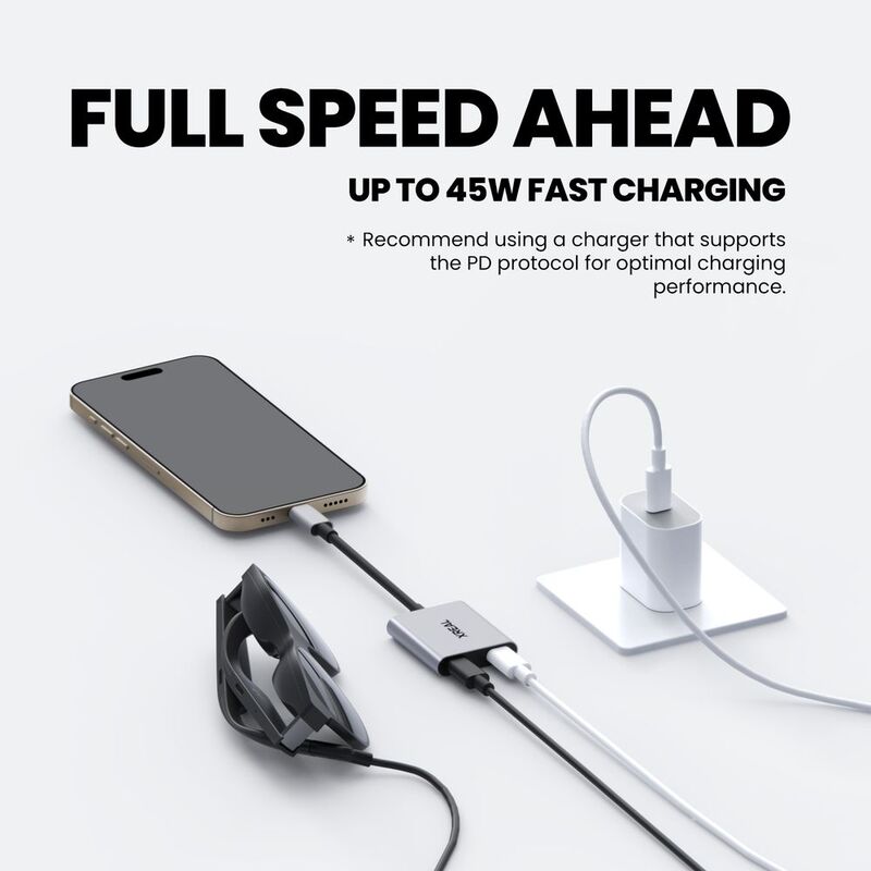 Deliver up to 45W charging for your devices, all while using your XREAL AR glasses. Note: Charging capability depends on the source device.