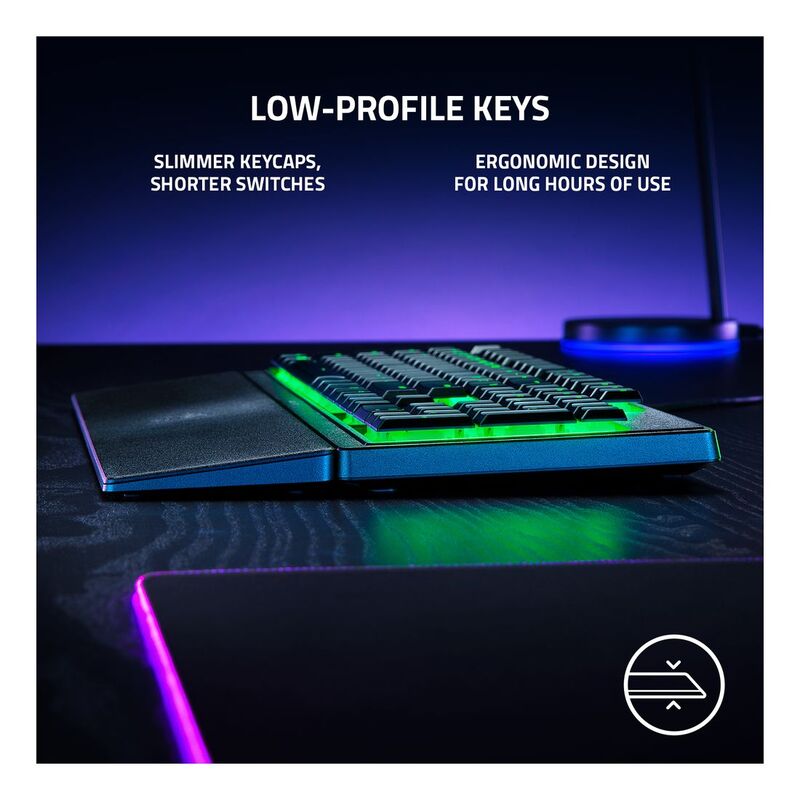 Take the first step towards next-level performance with the Razer Ornata V3 X - a low-profile ergonomic gaming keyboard designed to elevate your work and play. Featuring a new ultra-slim form factor, more durable keycaps, and Razer Chroma™ RGB, it is the perfect introduction to our unfair advantage.