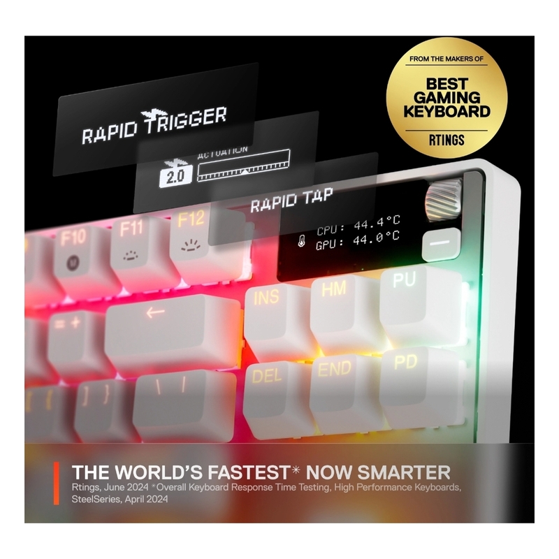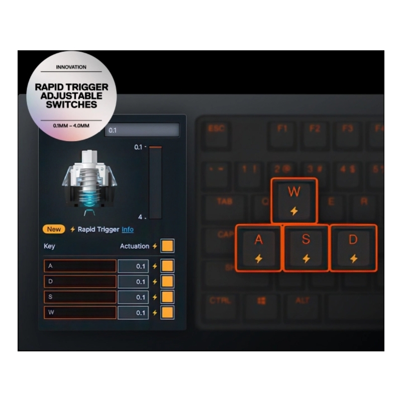 - REDUCED LATENCY — Rapid Trigger and Rapid Tap register keypresses faster for more responsive game play and improved aim.